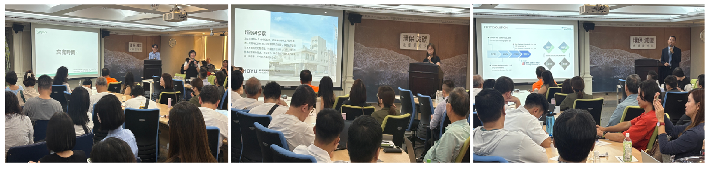 在「永續創新產品與技術聯合發表」環節,共有 9 家業者進行簡報分享, 展現多元的創新能量(依中文公司名筆畫排序):